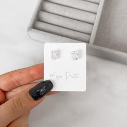Brinco zircônia retangular cristal 8x6mm | Mya Prata