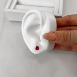 Brinco zircônia redonda cereja 6mm | Mya Prata