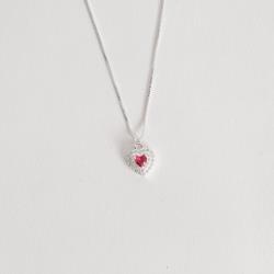 Descrição: Conjunto brinco e colar zircônia coração cereja com duplo cravejado 10mm 45cm fabricado(a) em prata