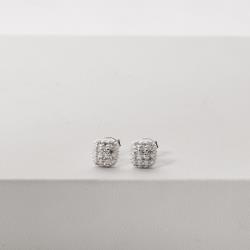Conjunto brinco e colar quadrado cravejado 6mm 40cm | Mya Prata