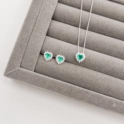 Conjunto brinco e colar zircônia coração acqua com cravejado 9mm 45cm | Mya Prata