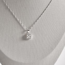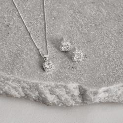 Conjunto brinco e colar pingente zircônia quadrada com cravejado 8mm 45cm | Mya Prata