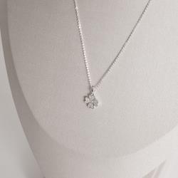 Conjunto brinco e colar trevo cravejado 11mm corrente cadeadinho 45cm | Mya Prata