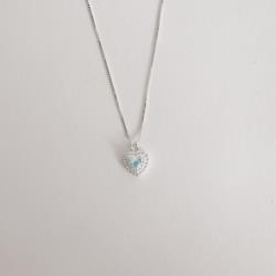 Conjunto brinco e colar zircônia coração azul claro com duplo cravejado 10mm 45cm | Mya Prata