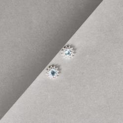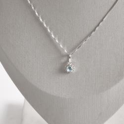 Conjunto brinco e colar zircônia redonda azul claro com cravejado 7mm 45cm | Mya Prata