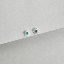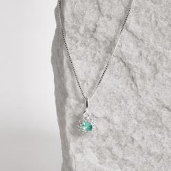 Conjunto brinco e colar zircônia redonda acqua com cravejado 7mm 45cm | Mya Prata
