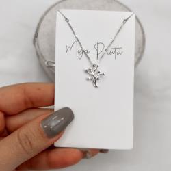 Colar árvore detalhe zircônias passante 14mm 45cm | Mya Prata