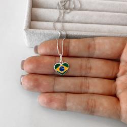 Colar pingente coração Brasil resina 12mm 45cm | Mya Prata