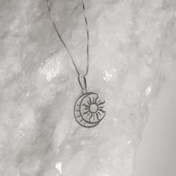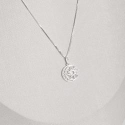 Colar pingente lua e sol 15mm 45cm | Mya Prata