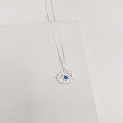 Colar pingente olho cravejado 17mm 45cm | Mya Prata