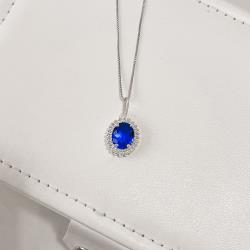 Colar pingente zircônia oval azul bic com cravejado 15mm 45cm | Mya Prata
