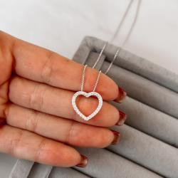 Colar coração vazado cravejado 15mm 45cm | Mya Prata