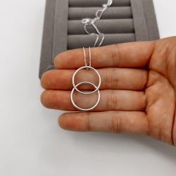Colar 2 circulos vazados 30mm 45cm | Mya Prata