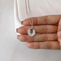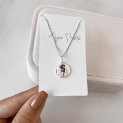 Colar pingente medalha rosa resina 15mm 45cm | Mya Prata