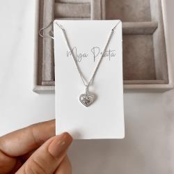 Colar pingente coração trabalhado 11mm 45cm | Mya Prata