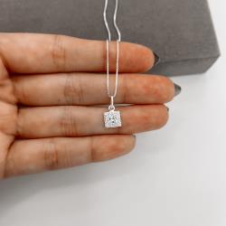 Colar pingente quadrado cravejado 8mm 45cm | Mya Prata