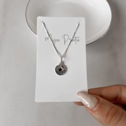 Colar pingente medalha calma, paz e equilíbrio resina 12mm 45cm | Mya Prata