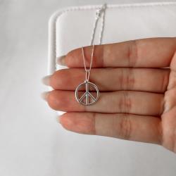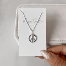Colar pingente medalha vazada símbolo paz 16mm 45cm | Mya Prata