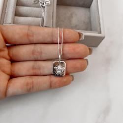Colar pingente medalha Espírito Santo desenhado 15mm 45cm | Mya Prata