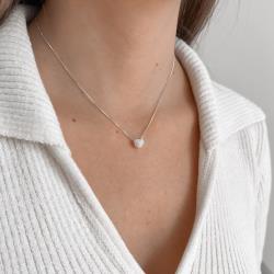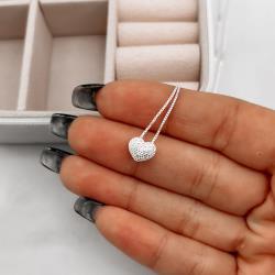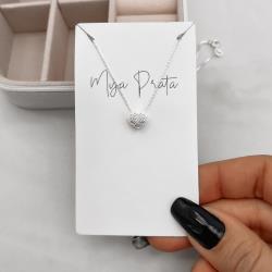 Colar coração cravejado 7mm passante 40cm | Mya Prata