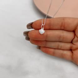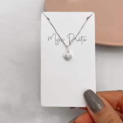 Colar pingente coração cravejado 6mm 40cm | Mya Prata