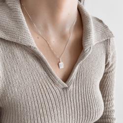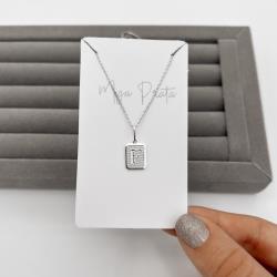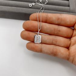 Colar pingente placa letra F 12mm 45cm | Mya Prata