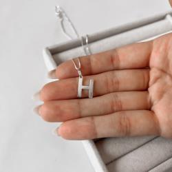 Colar pingente letra H 45cm | Mya Prata