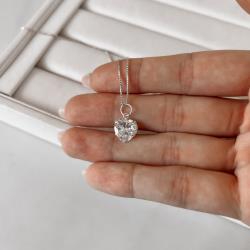 Colar pingente zircônia coração 10mm 45cm | Mya Prata