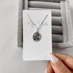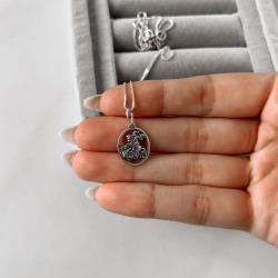 Colar pingente medalha São Jorge envelhecido 17mm 45cm | Mya Prata