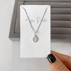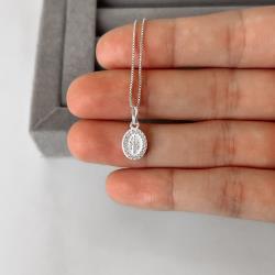 Colar pingente medalha Nsa. Sra. das Graças cravejada 10mm 40cm | Mya Prata