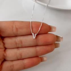 Colar letra V cravejada 6mm 45cm | Mya Prata