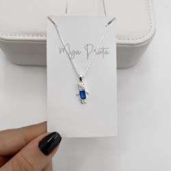 Colar pingente menino zircônia azul marinho 15mm 45cm | Mya Prata