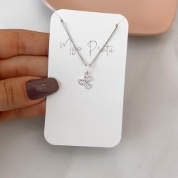 Colar pingente corações vazados com zircônias 9mm 40cm | Mya Prata