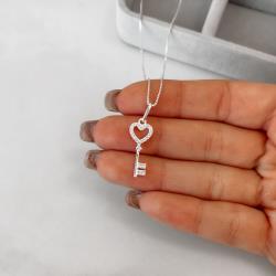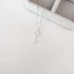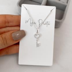 Colar pingente chave coração cravejado 19mm 45cm | Mya Prata