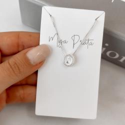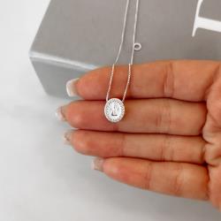 Colar medalha Nsa. Sra. Aparecida cravejada 10mm 40cm | Mya Prata