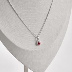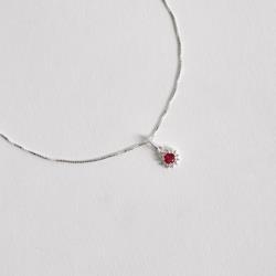 Colar pingente zircônia redonda cereja com cravejado 7mm 45cm | Mya Prata