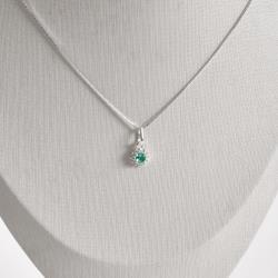 Colar pingente zircônia redonda acqua com cravejado 7mm 45cm | Mya Prata