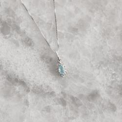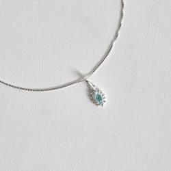 Colar pingente zircônia navete azul com cravejado 9mm 45cm | Mya Prata