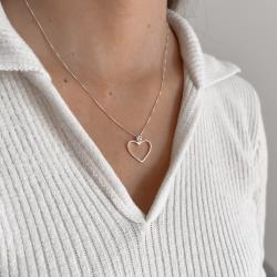 Colar coração vazado elo cravejado 20mm 45cm | Mya Prata