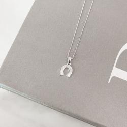 Colar pingente ferradura metade cravejada 9mm 40cm | Mya Prata