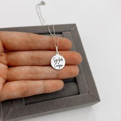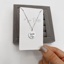 Colar pingente medalha seja forte e corajosa resina 15mm 45cm | Mya Prata