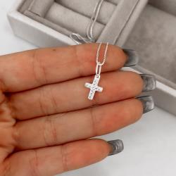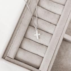 Colar pingente cruz cravejada 9mm 40cm | Mya Prata