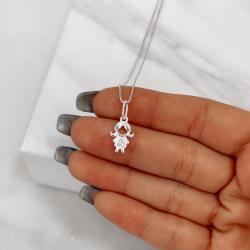 Colar pingente menina detalhe zircônias 12mm 45cm | Mya Prata