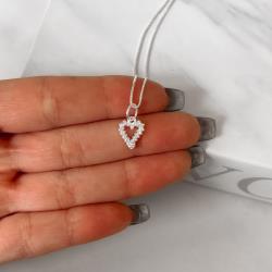 Colar pingente coração vazado cravejado 10mm 40cm | Mya Prata