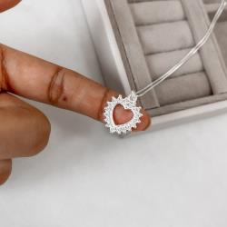 Colar pingente coração vazado com cravejado 16mm 45cm | Mya Prata