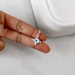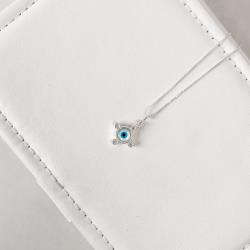 Colar pingente olho grego madrepérola com zircônias 13mm 45cm | Mya Prata
