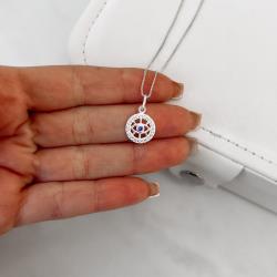 Colar pingente medalha olho cravejado com zircônia azul 12mm 45cm | Mya Prata