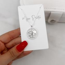 Colar pingente medalha mundo borda cravejada 22mm 45cm | Mya Prata