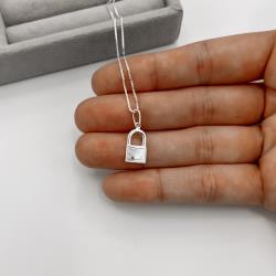 Colar pingente cadeado 13mm 45cm | Mya Prata