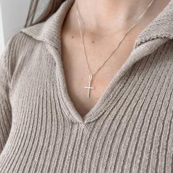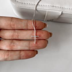 Colar pingente cruz palito 18mm 45cm | Mya Prata